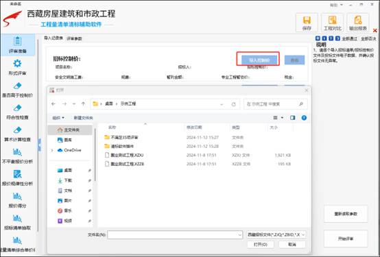 點(diǎn)擊導(dǎo)入控制價(jià)選擇相應(yīng)的招標(biāo)清單或招標(biāo)控制價(jià),導(dǎo)入后軟件會(huì)自動(dòng)提取相應(yīng)的信息。如圖示: