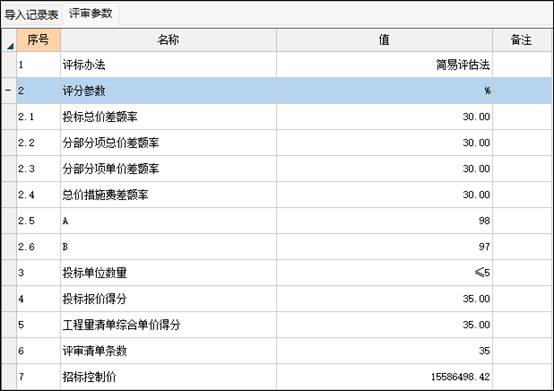 在評(píng)審參數(shù)界面請(qǐng)完善評(píng)審參數(shù)里面的信息。如圖示: