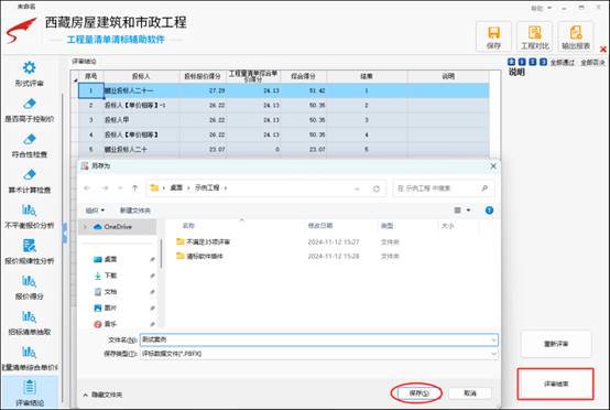 8. 按照評(píng)標(biāo)流程進(jìn)行操作,在評(píng)審結(jié)束后對(duì)評(píng)審的工程數(shù)據(jù)進(jìn)行保存,方便下次打開查看。如圖示: