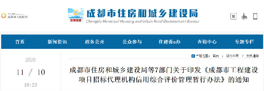 第三十三條 本辦法自2021年1月10日開(kāi)始執(zhí)行,有效期兩年。《關(guān)于印發(fā)〈成都市工程建設(shè)項(xiàng)目招標(biāo)代理機(jī)構(gòu)信用綜合評(píng)價(jià)管理暫行辦法〉的通知》(成住建〔2019〕158號(hào))延期至自本辦法施行之日廢止。