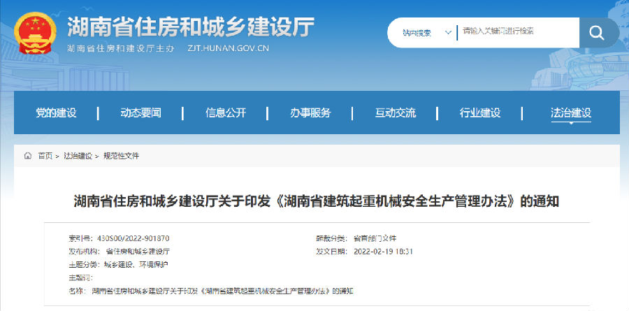 湖南省住房和城鄉(xiāng)建設(shè)廳關(guān)于印發(fā)《湖南省建筑起重機(jī)械安全生產(chǎn)管理辦法》的通知