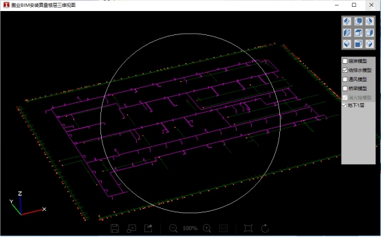 一鍵識別水系統(tǒng),智能提取管徑。消火栓、給排水識別、操作模式完全一樣。在模型中可根據(jù)實際情況對管道翻彎、高差進(jìn)行處理,翻彎與高差所形成的立管模型與工程量軟件自動生成,即使較為復(fù)雜的泵房也能輕松的處理。