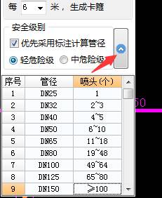 5. 設(shè)置計(jì)算規(guī)則:軟件默認(rèn)的管徑大小與噴頭數(shù)量之間的對(duì)照關(guān)系。