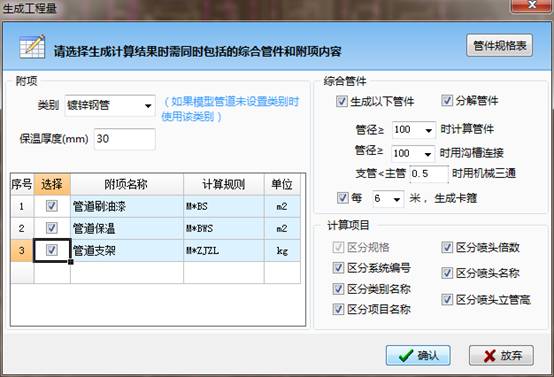 (3) 選擇是否需要刷油,保溫、支架等,單擊確認(rèn)。