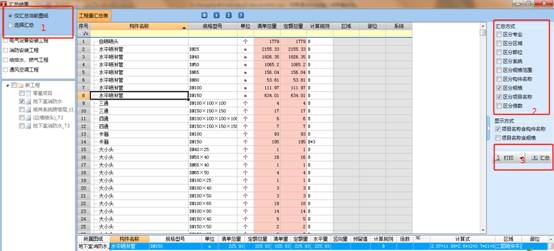 (6) 在匯總表中選擇需要匯總的工程1,在右側(cè)選擇匯總顯示的層次2,最后可以打印輸出3。如下圖。