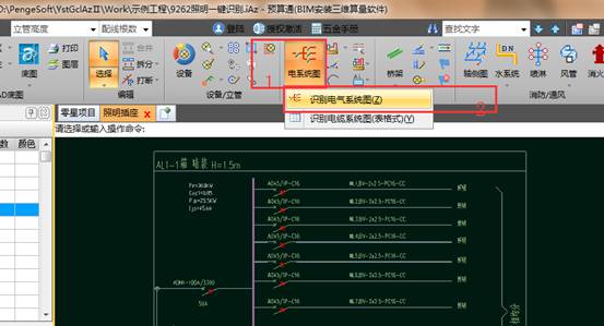 1.識別系統(tǒng)圖:點(diǎn)擊電系統(tǒng)圖下拉按鈕1,選擇識別電氣系統(tǒng)圖(Z)2,如下圖: