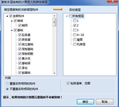 在選擇需要復(fù)制的樓層來源和指定需要復(fù)制的構(gòu)件。