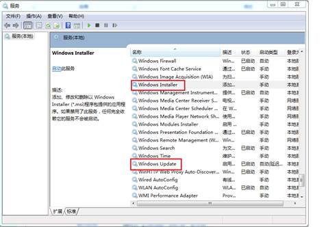 點擊確定打開“服務”,查看Windows Installer和Windows Update有沒有啟動,如圖1-1-3所示。
