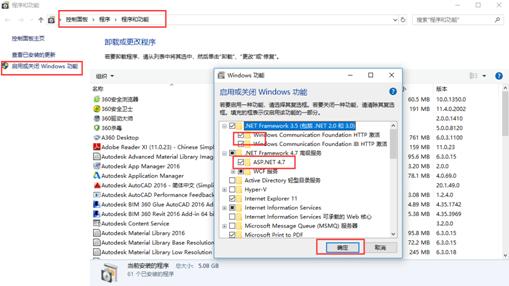 若沒有啟動,則先啟動這兩個服務,然后打開控制面板-程序-程序和功能-啟動或關閉Windows功能,如圖1-1-4所示的來勾選相關內容,點擊確定。點擊安裝包安裝軟件,即可安裝成功。
