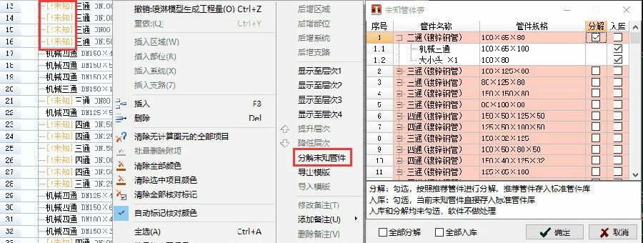 本次對(duì)該功能進(jìn)行了優(yōu)化,新增了入庫(kù)選項(xiàng),用戶也能自由的修改分解狀態(tài)下系統(tǒng)推薦的管件信息;