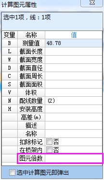 選中管線,右鍵屬性中設(shè)置單個(gè)管線圖元倍數(shù),設(shè)置了倍數(shù)的項(xiàng)工程量項(xiàng)顯示為橙色,在工程量表的計(jì)算式中即可定位到該項(xiàng)上;