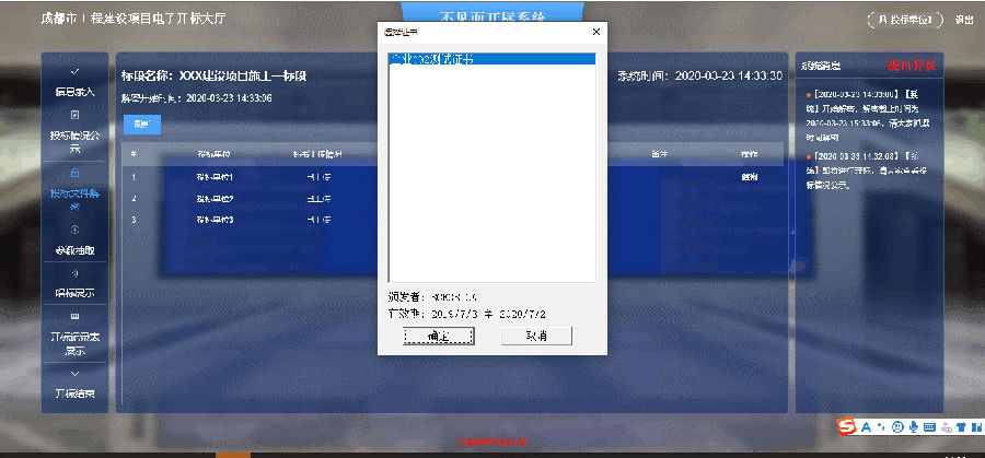 選擇“工程建設(shè)業(yè)務(wù)”類型,使用ca證書進入系統(tǒng),選擇開標標段進入標段開標。