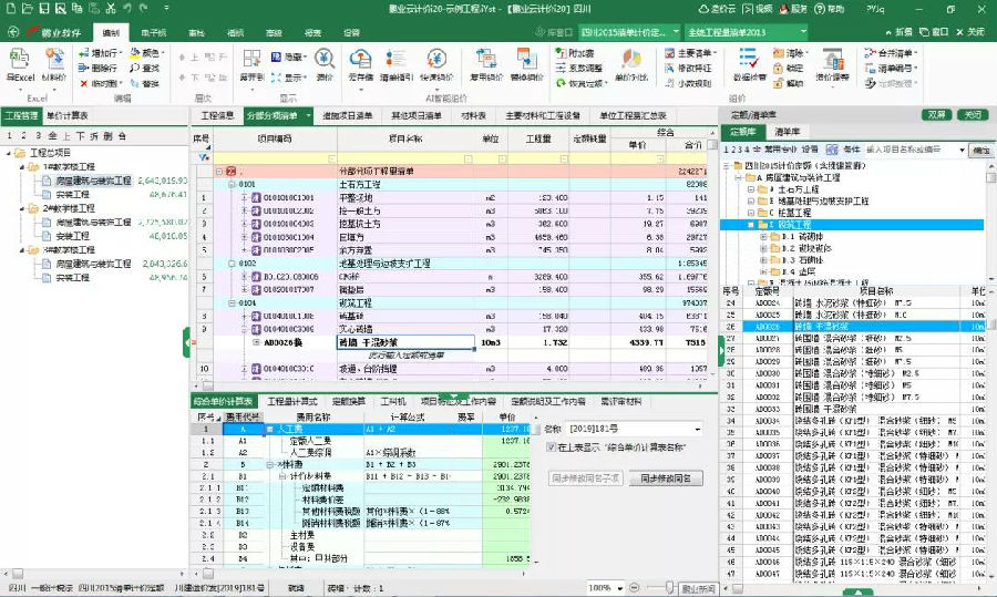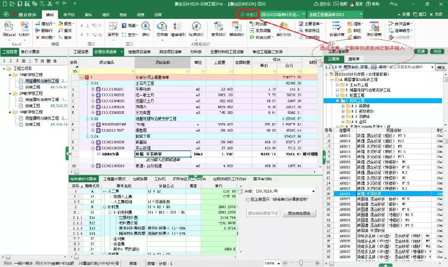 通過清單庫、定額庫窗口,快速實(shí)現(xiàn)清單、定額錄入。如圖示: