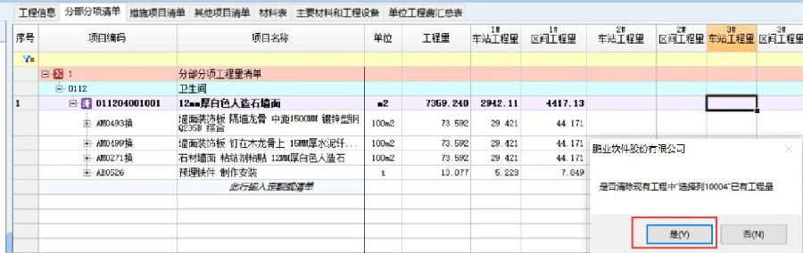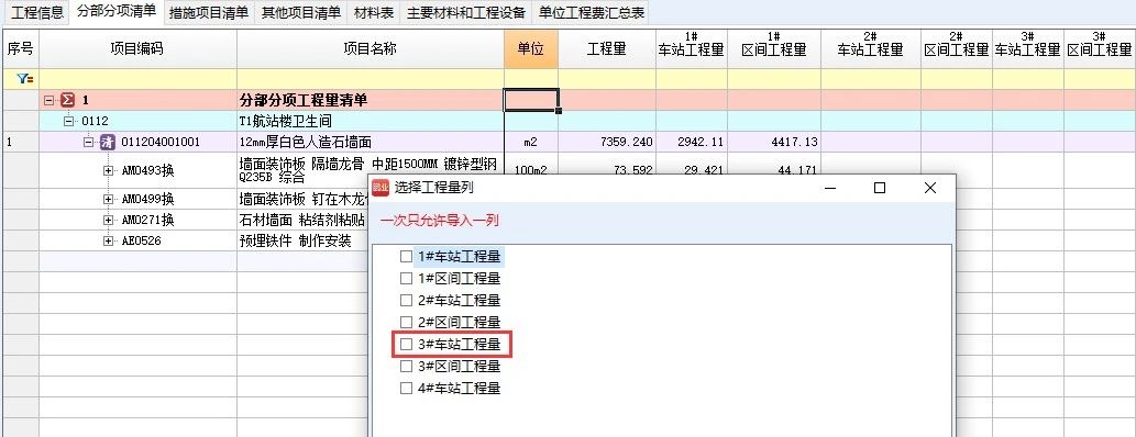 示例:將工程量導(dǎo)入“3#車站工程量”列。如圖示: