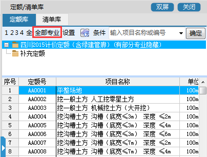 需要展示全部專業(yè),就點全部專業(yè),就會切換成展示全部定額專業(yè)