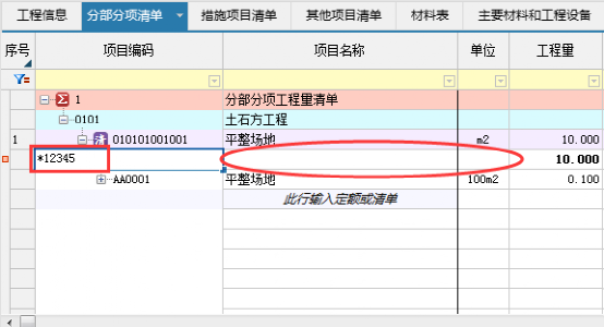 方式2:直接輸入清單編號,如輸入0101001敲擊回車鍵,對應清單就錄入好了;