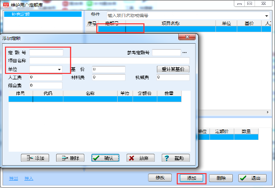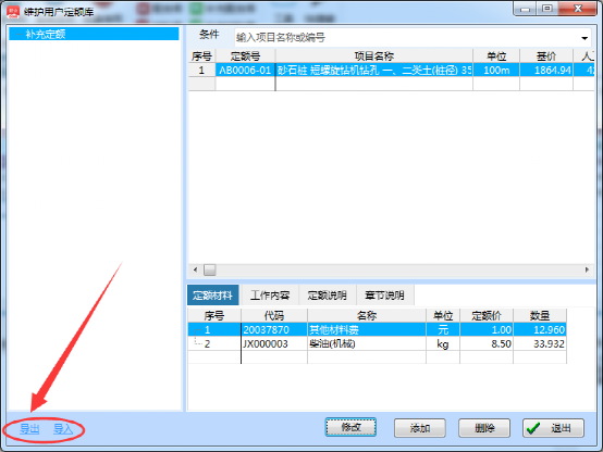 補充定額庫里面的定額可以導出和導入。方便在其他電腦上使用(注:補充定額庫導入軟件后,需要重啟軟件才能看見)