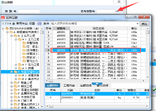 方式3:通過庫窗口選擇定額,找到對應定額,雙擊進行定額錄入;