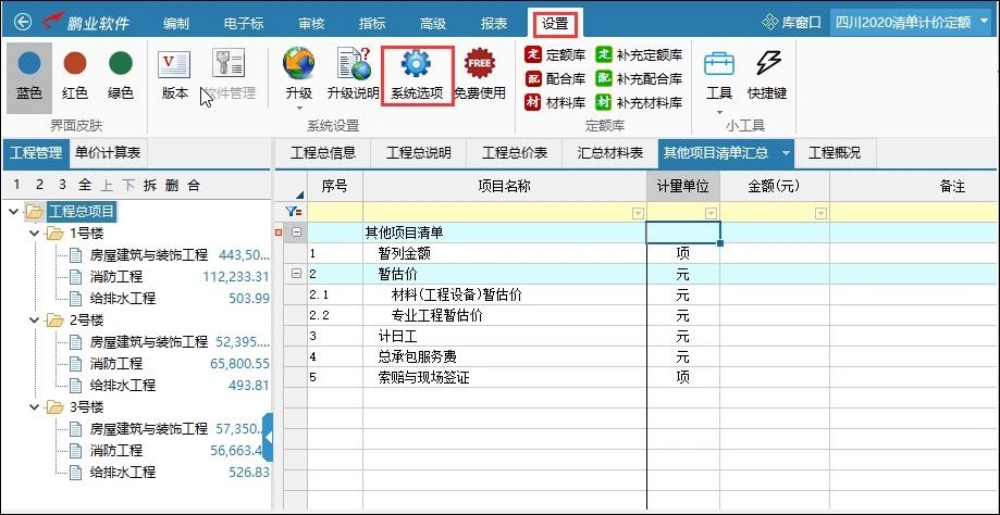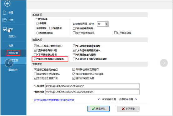 3.1 點(diǎn)擊設(shè)置-系統(tǒng)選項(xiàng),勾選單價(jià)計(jì)算表顯示定額條件,重啟軟件