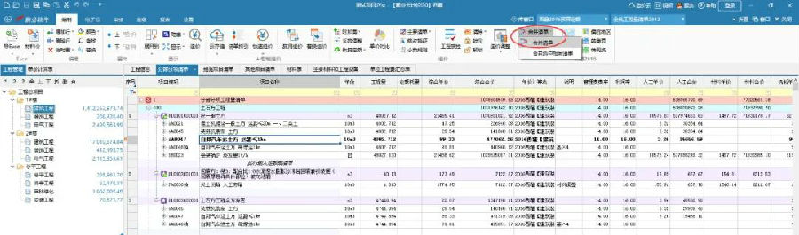 1.點(diǎn)擊編制-“合并清單”按鈕,將所有相同項(xiàng)目清單進(jìn)行合并。