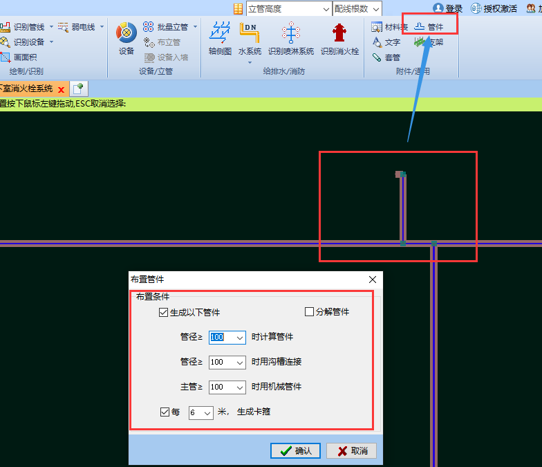 ①圖上選中需要計算管件的管道(已計算的管道)