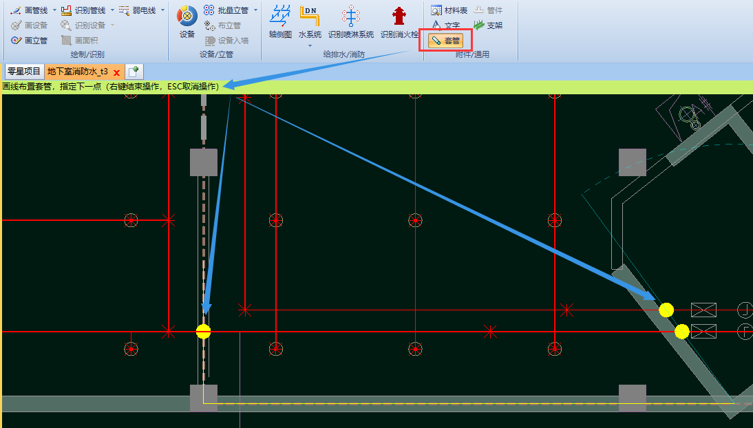 ②根據(jù)提示畫線和計算圖元相交生成套管