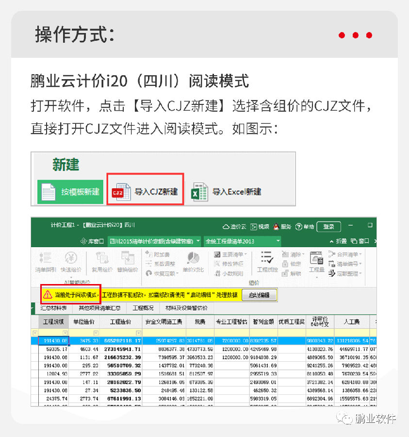 鵬業(yè)云計價i20(四川)閱讀模式操作方式:
