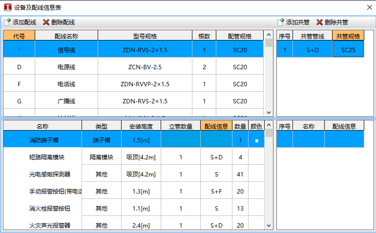 火災報警,設(shè)置好各設(shè)備接線信息后,各種配管配線工程量量智能拆分,多線共管也能輕松解決。