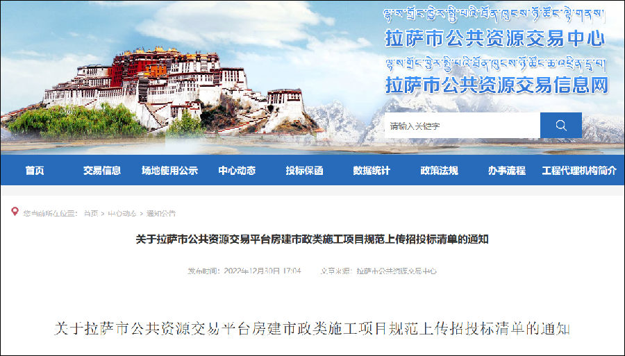 2022年12月30日拉薩市公共資源交易中心發(fā)布了《關(guān)于拉薩市公共資源交易平臺房建市政類施工項(xiàng)目規(guī)范上傳招投標(biāo)清單的通知》,從2023年1月3日起,各招投標(biāo)代理機(jī)構(gòu)通過平臺發(fā)布房建市政類施工項(xiàng)目招標(biāo)文件時(shí),請上傳.xml、.XZZB格式的招標(biāo)清單文件;投標(biāo)人在上傳房建市政類施工項(xiàng)目投標(biāo)文件時(shí),請上傳*.xml、*.XZTB、*.ZJQ格式的投標(biāo)清單文件。
