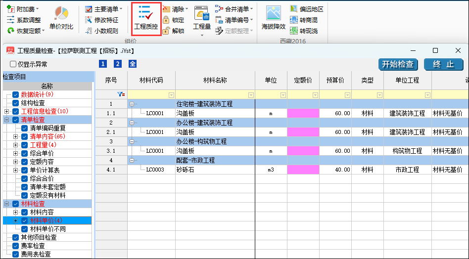 通過“工程質(zhì)控”和“檢查并導(dǎo)出”進(jìn)行招投標(biāo)質(zhì)量管控;