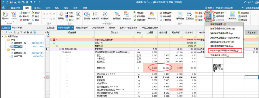 實(shí)現(xiàn)材料工程量一鍵轉(zhuǎn)換成消耗量。